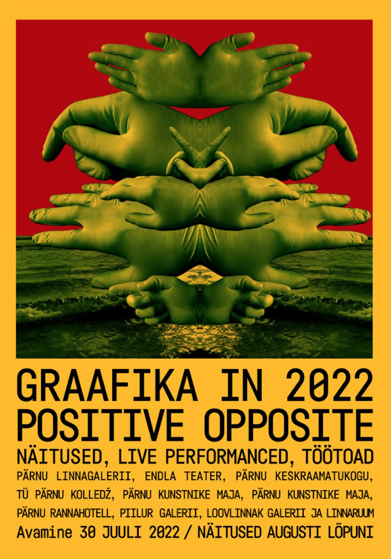 �Marko Kekishevi Kureeritud Eesti Graafilise disaini näitus: “Isikupära/Individuality ’22”, pühendatud Juri Lotmani 100 juubelile, teema Ennustamatus/Unpredictability. Osalevad / Participants: Alejandro Criollo Hernández MEX, Andra Seepter EST, Andrei Kormashov EST, Andrej Hascak SVK, Anna Black UKR, Anna Lukyanova RUS, Anne Aidma EST, Ardo Sägi EST, Artur Kuus EST, Barnabas Wetton DNK, Berta Kisand EST, Brad Tzou TWN, Cristopher Siniväli EST, Dariush Allahyari IRN, Darya Prokharava BLR, Eduardo Davit URG, Ellen Loitmaa EST, Erik Teemägi EST, Erin Wright USA, Eston Kamelang Mauleti IDN, Faldin-family RUS, Gatis Vanags LAT, Gerhard Spilgies DEU, Ibrahim Yılmaz TUR, Ieva Marta LAT, Ivan Kashlakov BGR, Jaanika Luht EST, Janno Preesalu EST, Jarek Bujny POL, Jouri Toreev BLR, Kadri-Maria Mitt EST, Kaia Rähn EST, Karl Ahun EST, Karl Ludenhof EST, Kata Kaldor HUN, Keith Kitz USA, Lajos Nagy HUN, Li Xu CHN, Lii Ranniku EST, Liis Todesk EST, Luis Antonio Rivera Rodriguez MEX, Mait Kroonmann EST, Marcin Grabia POL, Maret Põldre EST, Margus Tamm EST, Mari Seger EST, Maria Zhuk BLR, Mario Fuentes ECU, Maris Lindoja EST, Marko Kekishev EST, Mart Anderson EST, Martin Pedanik EST, Martin Rästa EST, Michał Olkowicz POL, Mirjam Varik EST, Natalia Ivashina RUS, Naufan Noordyanto IDN, Neeme Möll EST, Nicos Terzis SWE, Nikolay Shtok RUS, Patrycja Longawa POL, Pavel Pisklakov RUS, Peter Bankov CZE, Peter Javorik POL, Raido Laasi EST, Rashid Rahnama IRN, Robi Jõeleht EST, Sergey Veprev RUS, Silver Vahtre EST, Ursula Aavasalu EST, Valdek Laur EST, Vello Lillemets EST