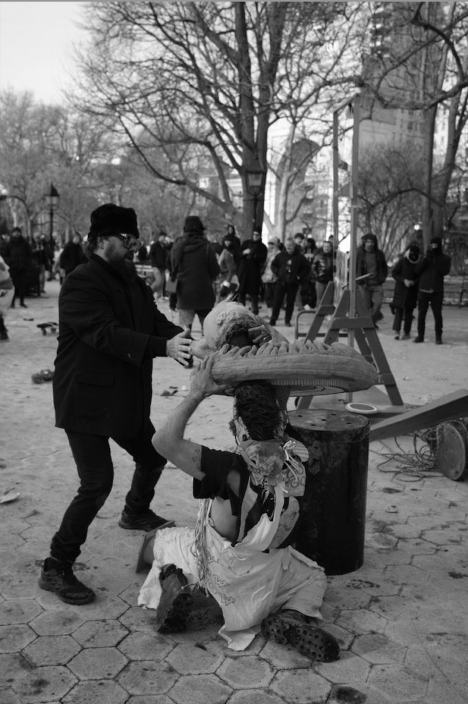 In addition to Non Grata, the New York alternative collectives Guerilla Theater and AnarkoArtLab performed. The two-hour improvised performance “Melting point,” surrounded by hundreds of spectators in the heart of the Big Apple, melted blues and reds, blacks, whites, yellows, beiges and oranges into one, to continue navigating the endless paths of the universe as a unified whole.