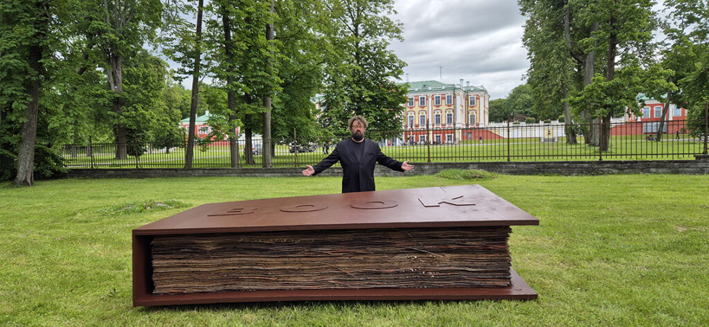 Skulptuuri õppinud inimesena väljendab ta ennast ka selles formadis vabalt ning selle tõstuseks on Kadriorus töö nimega “Raamat”. Töö on kantud pessimismist digikultuuri pealetungi jälgides ning autor justkui tahaks küsida, et kas rumaluse ja pealiskaudsuse kultuurile üldse enam vastu saab. Igal juhul tekitas teos vähemalt skulptorite seltsis sel teemal elavat arutelu, kusjuures argumente jagus mõlemale poole. Teose üle ajastute vaatavaid mõõtmeid võimestab hästi õnnestunud asukoht ajaloolise barokk-lossi taustal. Tahaks öelda, et jäi barokk, jäävad ka raamatud!