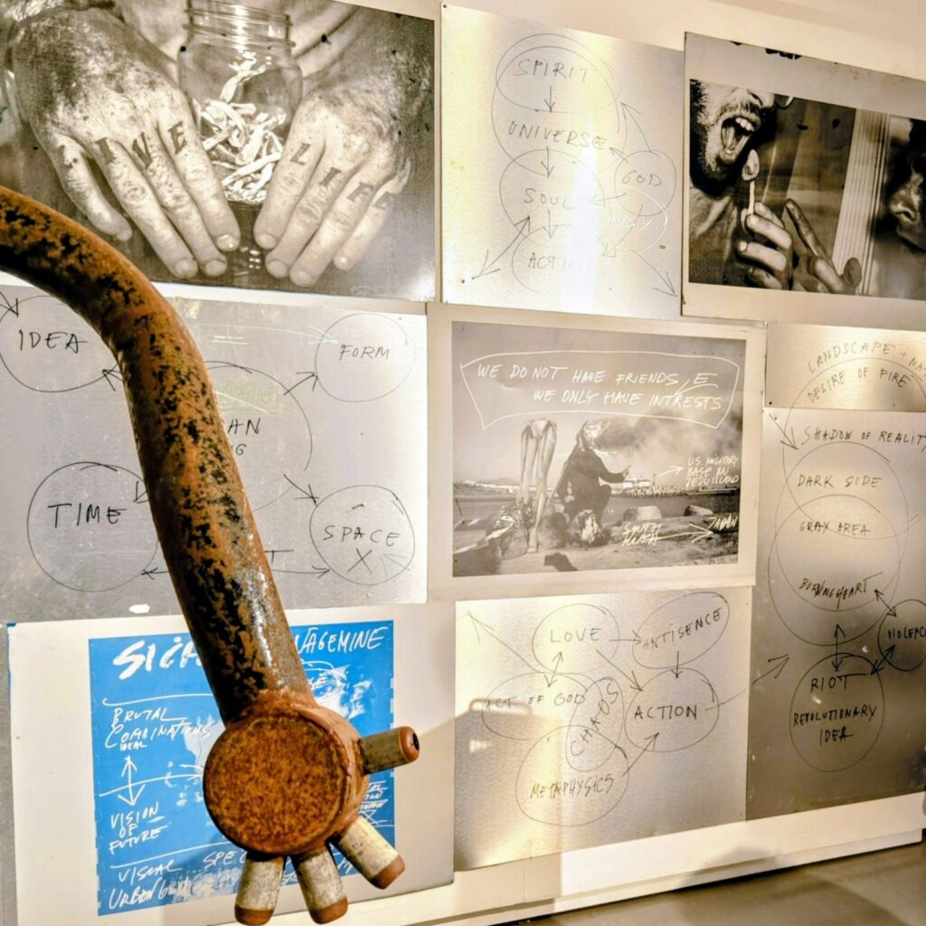 The flow of ideas is depicted by Venn diagrams. Are these the project plans for a performance or notes for an interpretation? Wisdom, Faith, Madness overlap in a Venn diagram. Mental and physical madness. Health, sex, education, empathy, open mind, power, knowledge, genes all feed in. The background is built of the social, political, anthropological, historical, cultural, virtual, material, mental, and geographical. That is what you might feel this exhibition is starting to explain.