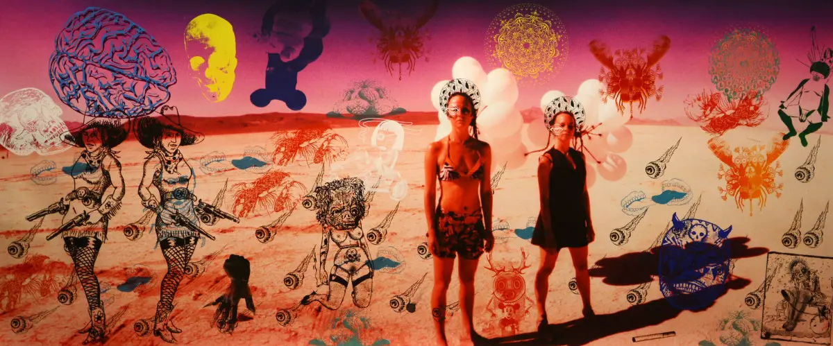 The work was completed during a tour in Asia, America, and Europe in 2010-2015. In each city, one of the global underground stars has left an imprint of their visual figurative language on the documentation of the performance art events, whether in front of the lens, in a woodcut, silkscreen, as a specific human resource, memory, or handprint – in New Orleans, Oklahoma, Corpus Christi, Beijing, Texas, Paris, Black Rock City, Nevada, Burning Man, Miami, the Faroe Islands, Iceland, Paris, Berlin, New York.