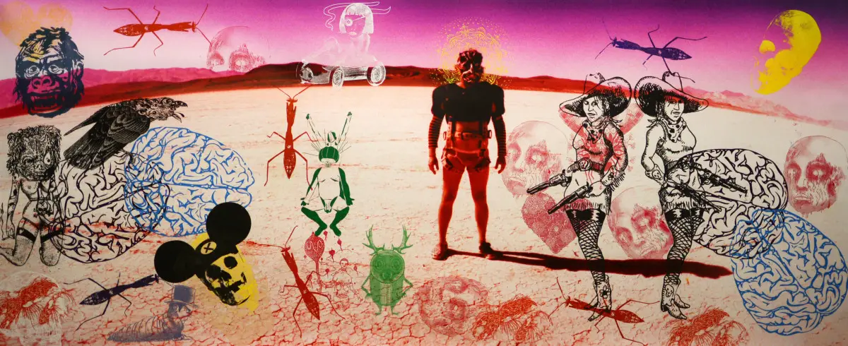 The work was completed during a tour in Asia, America, and Europe in 2010-2015. In each city, one of the global underground stars has left an imprint of their visual figurative language on the documentation of the performance art events, whether in front of the lens, in a woodcut, silkscreen, as a specific human resource, memory, or handprint – in New Orleans, Oklahoma, Corpus Christi, Beijing, Texas, Paris, Black Rock City, Nevada, Burning Man, Miami, the Faroe Islands, Iceland, Paris, Berlin, New York.